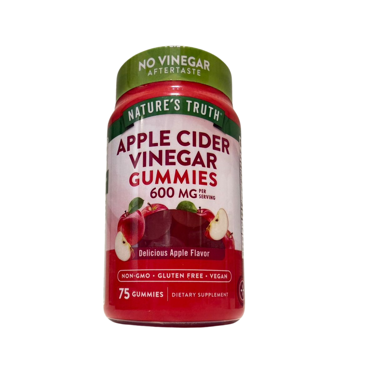As Gomas de Vinagre de Sidra de Maçã da Nature's Truth® contêm um delicioso sabor natural de maçã que não deixa um gosto residual desagradável. Cada porção contém 600 mg de Vinagre de Maçã, tudo em gomas veganas práticas.